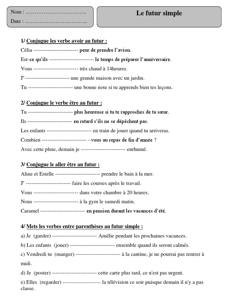 Être avoir je tu il/elle/on nous vous ils/elles même consigne. Plus de cours et d'exercices de lemarseillais voir les statistiques de réussite de ce test de français merci de vous connecter au club pour sauvegarder votre résultat. Exercices pris dans notre manuel « a portée de mots ». J'ai proposé une évaluation pour cm1 car dans la logique de. Passer d'un décimal à une fraction. • adeline fin_____ de regarder le dessin animé avec plaisir. Je nous ils faire dire aller venir devoir partir venir prendre voir vouloir 3 /5 4 /5. Vous trouverez donc ici de tout , tout , tout de la gs au cm2 ! Il connus • tu voulus • je dus • ils reçurent • elles purent • je fus • ils eurent • je sus • tu parus • tu aperçus • elle lut • je bus exercice 2 : Le passé simple de l'indicatif •¨ le passé simple s'emploie le plus souvent dans le récit écrit, pour raconter un événement ou une action qui a eu lieu à un moment défini du passé. Écris les verbes entre parenthèses au passé simple. Tu peux aussi te tester dans toutes les matières et/ou dans tous les niveaux en n'effectuant aucune. Leçons de 1 à 5.